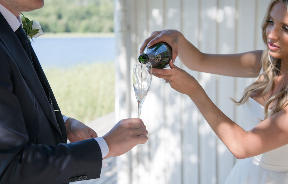 Amerikanske Ashley og svenske Jesper sagde ja til hinanden ved kanten af Landvettersøen på en varm og smuk svensk sommerdag.